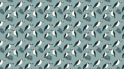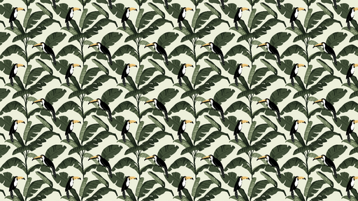 WonderMuralNajlepši tapet našega izbora predstavlja očarljiv vzorec elegantnih tukanci, ki posedajo na velikih tropskih listih in ustvarjajo veselo in eksotič...