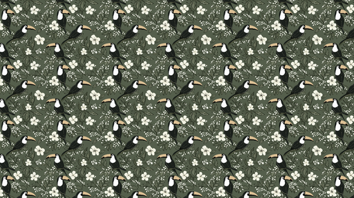 WonderMuralNaša čudovita fototapeta prikazuje živahen vzorec tukani, ki izstopajo med bujnimi tropskimi listi. Temno zelene ilustracije na svetli podlagi prin...