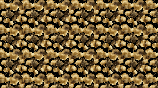WonderMuralTa ozadje prikazuje osupljiv motiv ginkgo listov v zlati barvi, ki se elegantno dviga proti globoko črnemu ozadju, ustvarjajoč šik in sofisticiran ...