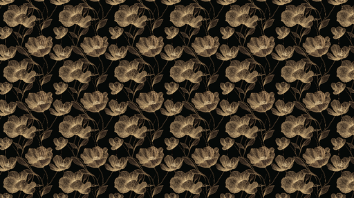 WonderMuralTa ozadje prikazuje razkošen vzorec zlatih cvetov makov, subtilno razporejenih na globokem črnem ozadju. Nežni zlati odtenki dodajajo pridih luksuz...