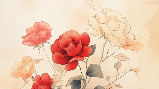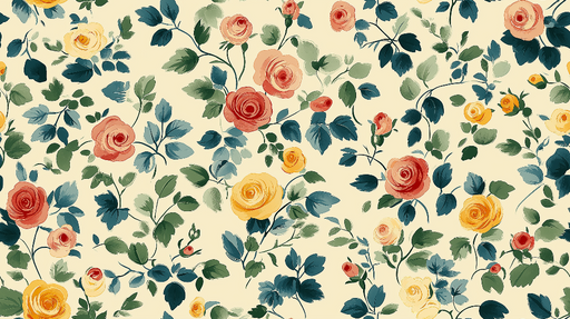 Ogled celotnih podrobnostiCvetlična tapeta | Pisane vrtnice na kremnem ozadju