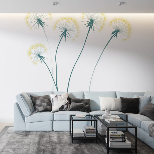 WonderMuralTo živahno fotografsko ozadje prikazuje pisano cvetlični vzorec z rožami v odtenkih rumene, roza, modre in bele barve na turkiznem ozadju. Rože, ra...