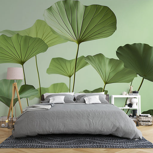 WonderMuralTa osupljiv mural tapete prikazuje bujno vzorec lotusovih listov, kjer je vsak list natančno podroben z nežnimi žilami, ki kontrastirajo z odtenki ...