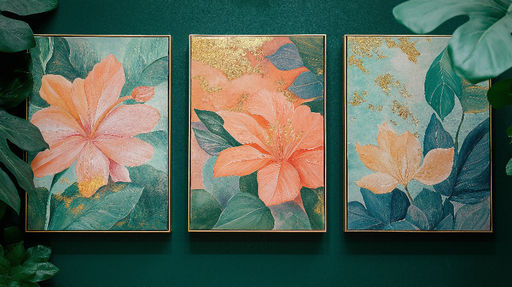 WonderMuralNaša tapeta prikazuje prelep ansambel tropskih cvetov v nežnih odtenkih, ki segajo od bledo rožnate do tople oranžne, popolnoma kontrastirane z sma...