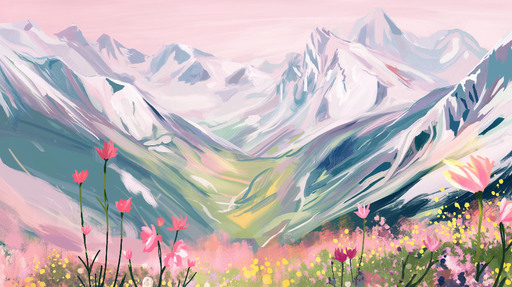 Ogled celotnih podrobnostiMuralna ozadja pastel | Rože in gore v ozadju