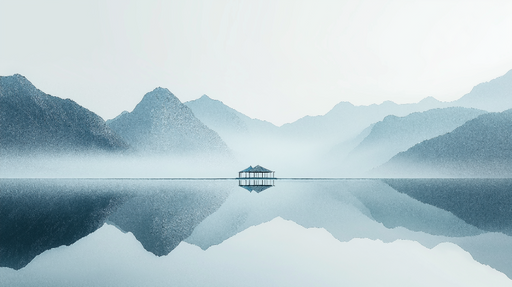 WonderMuralPopolnoma se potopite v mir s to tapeto, ki zajema idiličen pogled na gore, ki se odsevajo v mirnih vodah jezera. Prehod modre barve in nežna megli...