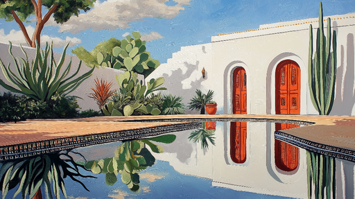 WonderMuralNaša tapeta pričara očarljiv sredozemski vrt, značilen po bujnem sočnem rastlinju in izstopajočih rdečih vratih arkin. Dinamična kompozicija ponuja...