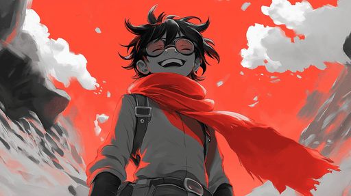 WonderMuralNaša tapeta vsebuje mladega junaka z živo rdečim šalom, ki čudovito kontrastira z živahnim ozadjem rdečih in nevtralnih odtenkov. Njegov vesel nasm...