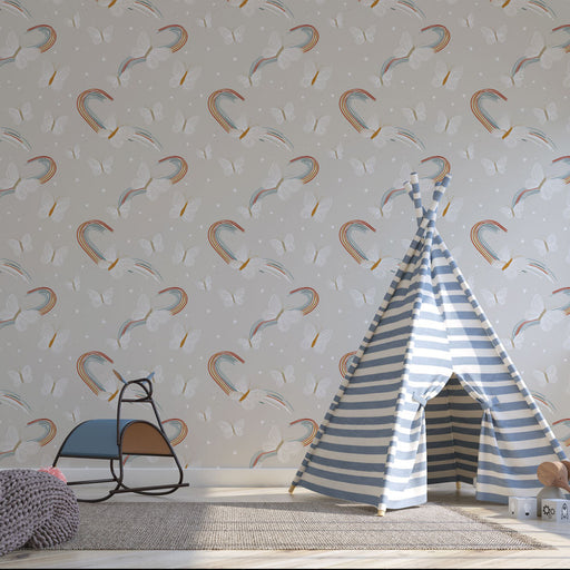 Rainbow and butterfly Tapete | Igrivi vzorci na nevtralnem ozadju