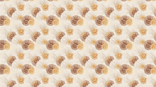 WonderMuralTa ozadje prikazuje očarljiv vzorec školjk v toplih odtenkih bež, rjave in zlate barve, ki vzbudi lepoto morja in narave. Drobni detajli linij in t...