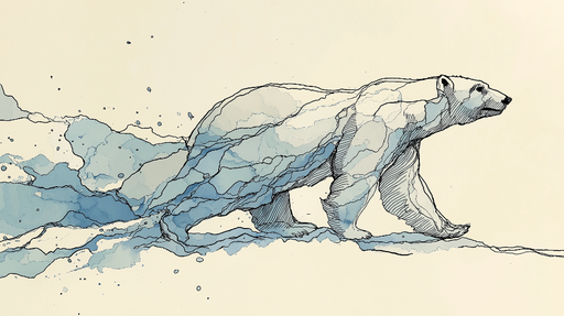 WonderMuralNaša fototapeta prikazuje stiliziranega polarnega medveda, ustvarjenega z nežnimi linijami in pljuski akvamarin modre barve, kar ustvarja sodobno i...
