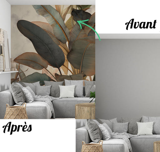 WonderMuralTa ozadje se izstopa zaradi svojega edinstvenega dizajna, ki združuje mehke mavrice in nežne vzorce listja. Bež, sivi in črni odtenki se združijo...