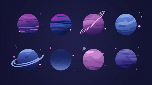Ogled celotnih podrobnostiFototapeta-planeti | Vesolje z barvitimi planeti v odtenkih vijolične in modre