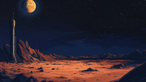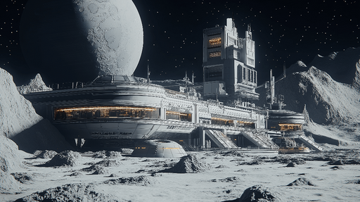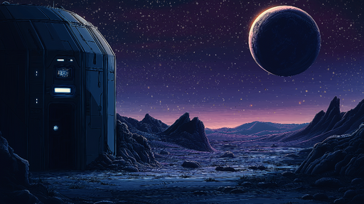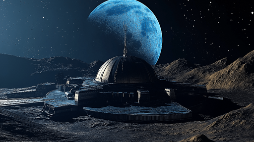 WonderMuralOdkrijte našo tapeto z futuristično vesoljsko bazo, ki je postavljena na površje oddaljene lune, osvetljene z utripajočimi zvezdami. Podrobna in mo...