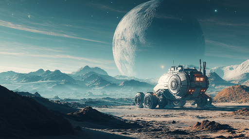 Ogled celotnih podrobnostiMuralna tapeta vesolje | Raziskovanje oddaljenega planeta s futurističnim vozilom