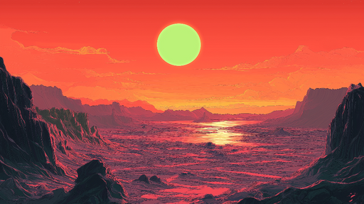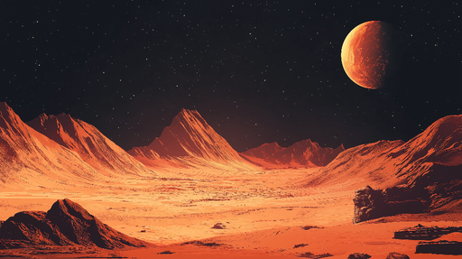 WonderMuralTa očarljiva tapeta prikazuje zunajzemeljsko pokrajino z veličastnimi gorami in svetlečo rdečo luno, ki ustvarja edinstveno in fascinantno vzdušje....