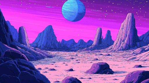Ogled celotnih podrobnostiVesolje tapet | Živahna lunarna pokrajina z vijoličnimi in zvezdnatimi odtenki