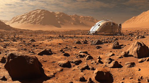 Ogled celotnih podrobnostiVesolje fototapet | Marsovska pokrajina in futuristično bivališče
