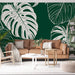 Tapeta tropsko listje | Beli listi monstere na temno zeleni podlagi