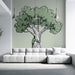 Ta originalna fototapeta prikazuje stilizirano drevo z umirjeno zelenimi listi, kar ustvarja harmonično povezavo z naravo. Upodobitev osebe, ki objema debla drevesa, dodaja igriv in topel dotik ter simbolizira ljubezen do narave in ekologije.