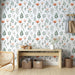 Nežen cvetlični tapet | Barviti vzorci cvetja in listov na beli podlagi