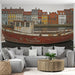Živahne barve stavb se harmonično mešajo z vremenskimi vplivi na čolnu, kar ustvarja nostalgično in umirjeno vzdušje. Idealno za dnevno sobo, spalnico ali prostor za sprostitev, ta morska tapeta vzbuja spomine na potovanja in pustolovščine na morju.
