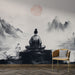 Ta zen stenski mural vsebuje pomirjujočo ilustracijo silhuete, ki meditira na vrhu gore, obdana z meglenimi pokrajinami. Idealno za ustvarjanje mirnega in duhovnega vzdušja v vašem bivalnem prostoru.