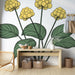 Stenska tapeta rumene rože | Svež rumen cvetlični vzorec z bujnim listjem