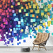 Ta osupljajoči muralni tapeti prikazuje abstraktni vzorec pisanih kvadratov, ki se zdijo plavati v dinamičnem gibanju. Prehodi živahnih barv, ki segajo od toplih tonov do hladnih odtenkov, ustvarjajo energično in sodobno vzdušje, popolno za prinesite estetski dotik v vaš notranjost.