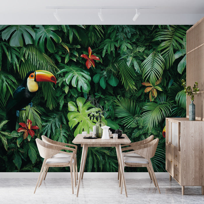 Preoblikujte svoj prostor z našo džungelsko tapeto za steno, ki prikazuje osupljive tukane v bujnem okolju tropskih listov. Ta živahen dizajn neposredno prinaša bogastvo deževnega gozda v vaš dom, ustvarjajoč eksotično in osvežujoče vzdušje.