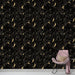 Naša tapeta prikazuje eleganten vzorec črnih listov, ki so nežno prepleteni, obogateni z zlatimi potezami, ki dodajo noto sofisticiranosti. Ta kompleksen dizajn ustvarja bogato in toplo vzdušje, ki je popolno za sodoben in rafiniran interier.