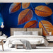 Ta ta foto behang prikazuje osupljiv dizajn z listi v živahnih odtenkih oranžne barve, ki se izstopajo proti globoko modremu ozadju. Nežna tekstura listov ustvarja očarljiv vizualni učinek in dodaja pridih narave v vaš notranji prostor.