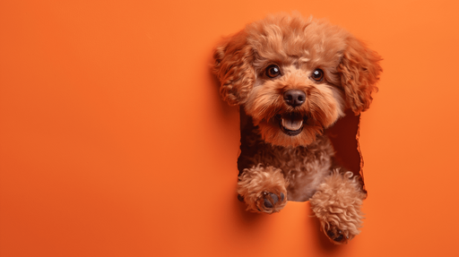 WonderMuralDenna fängslande tapet har en bedårande röd pudel som glatt framträder från en ljusorange bakgrund. Den släta texturen och enhetliga färgen på bakg...