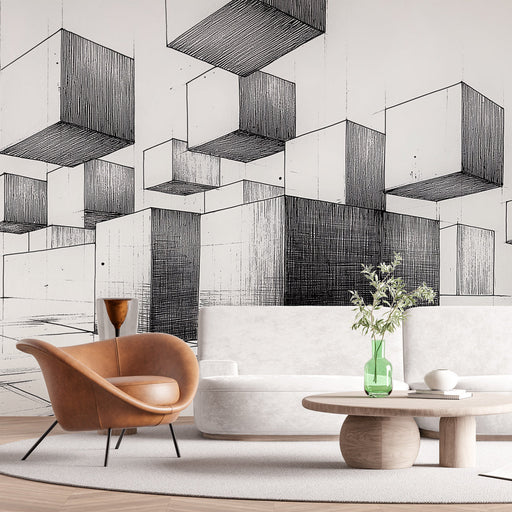 WonderMuralDenna tapet har ett fascinerande mönster av flytande kuber i perspektiv, vilket skapar en illusion av djup och rymd. Den svartvita designen framhäv...