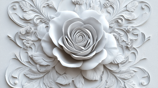 3D Blommig Fototapet | Upphöjda Blommor på Vit Bakgrund