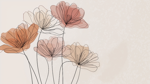 WonderMuralDenna tapet representerar ett elegant motiv av skisserade konturblommor, med mjuka nyanser av rosa och orange. De genomskinliga bladen, ömt överlag...