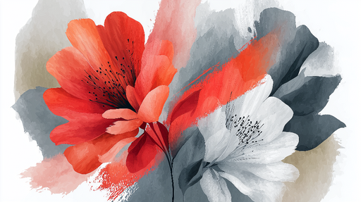 WonderMuralVår vackra fototapet har en abstrakt design som visar upp livliga röda blommor och nyanser av vitt på en delikat bakgrund. Flytande penseldrag och ...