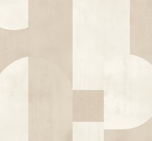 Art by SiennaDenna tapet har en konstnärlig komposition av geometriska former, som blandar halvcirklar och rektanglar i nyanser av beige och kräm. Det subtila s...