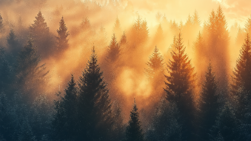WonderMuralDenna fängslande fototapet illustrerar en fängslande skog där det gyllene solljuset tränger genom dimman och skapar en mystisk och varm atmosfär. T...