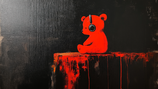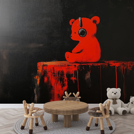 WonderMuralDenna fängslande tapetmålning har en röd björn med en djärv design, som bär hörlurar mot en djupt svart bakgrund. Den grafiska och färgstarka effek...