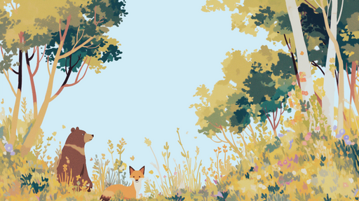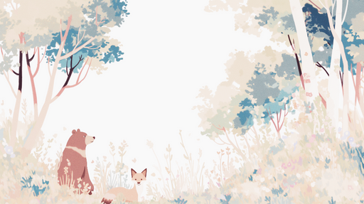 VisualsDenna förtrollande tapet har en illustration av en fridfull skog där en björn och en räv lever i harmoni. De mjuka färgerna och intrikata detaljer ...