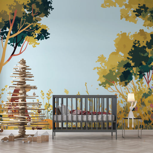 WonderMuralVår charmiga fototapet har en björn och en räv i en naturlig miljö, vilket skapar en glädjefylld och lugnande atmosfär. De pastellfärger för tankar...