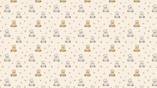 WonderMuralDenna charmiga fototapet visar bedårande björnar i olika nyanser, tillsammans med gyllene stjärnor på en mjuk, neutral bakgrund. De ömtåliga illust...