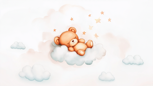 WonderMuralDenna varma tapet har en bedårande sovbjörn som vilar på en fluffig moln, omgiven av glittrande stjärnor. De mjuka och pastellfärger skapar en frid...