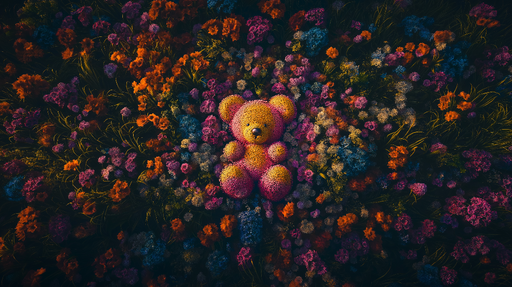 Visa fullständiga detaljerFototapet little-bear | Färgglad björn bland ljusa blommor