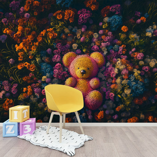 WonderMuralUpptäck vår plyschdekoration som representerar en bedårande björn, delikat placerad på en bädd av livliga blommor. Denna björn med sina skimrande f...