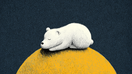 WonderMuralVår exklusiva fototapet visar ett charmigt mönster av en isbjörn som sover fridfullt på en gul kulle, mot en mörk bakgrund. Illustrationen, med sin...