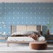 Lägg till en touch av mjukhet och modernitet i ditt utrymme med vår blåa och vita prickiga tapetmålning. Denna charmiga design har subtila vita prickar på en mjuk blå bakgrund och erbjuder en ren och elegant stil som passar perfekt för barnens sovrum eller lekrum.