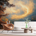Fördjupa dig i en mystisk atmosfär med vår förtrollande landskapsmural tapet, med en fridfull sjö insvept i en gyllene dimma. Trädens hösttoner blandas med himlens etereala glans, vilket skapar en förtrollande miljö för ditt vardagsrum.