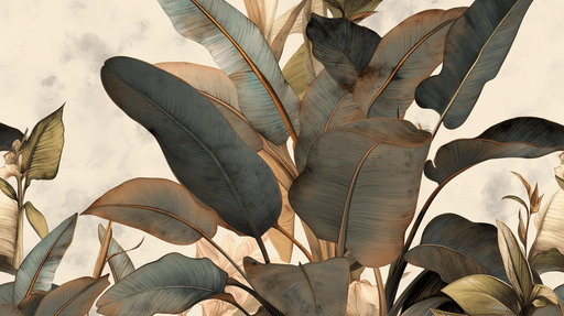 WonderMuralDenna tapetmålning illustrerar stora tropiska blad i vintagestil. Nyanserna av grönt, blått och brunt blandas harmoniskt på en beige bakgrund och s...